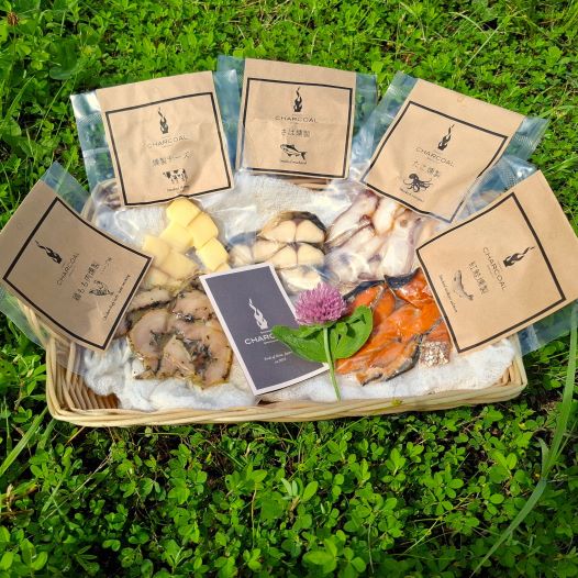 その名の通り、当店は昔ながらの原始的な製法にこだわり、熱源には炭、燻煙材には秋田の山桜の原木のみを使用。やわらかな煙で、素材本来の風味を引き出しながら、上品な香りをまとわせます。